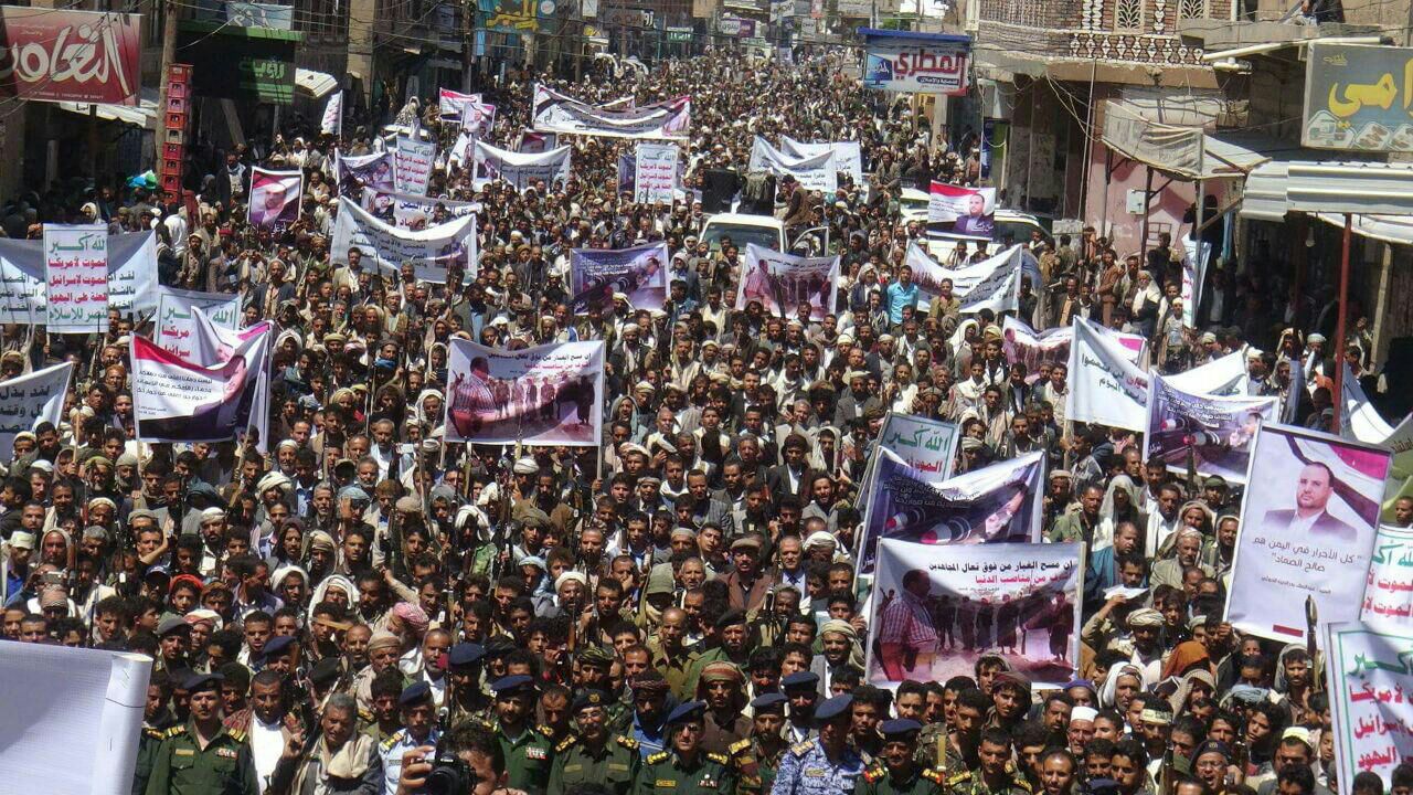 خرج أبناء محافظة ذمار في مسيرة جماهيرية حاشدة جابت شوراع مدينة ذمار بحضور رسمي وشعبي حاملين لبنادقهم على اكفهم مؤكدين على مواصلة مشروع البناء والحماية الذي تبناها الرئيس الشهيد صالح علي الصماد وأكدوا على ان جريمة استهداف الرئيس لم يزيدهم الا عزيمة وإرادة وصلابة للمضي على درب الشهادة ومواجهة قوى الغزو والارتزاق حتى ينتصر الشعب اليمني على من اعتدى عليه.