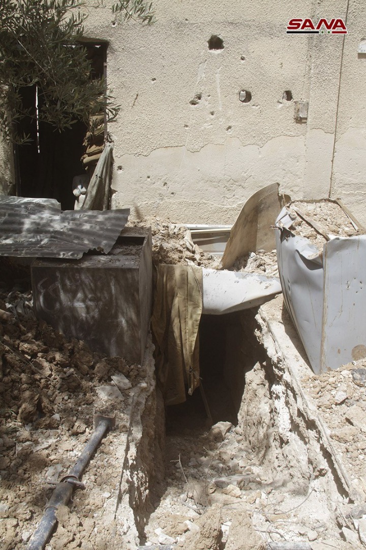الجيش السوري يعثر على شبكة أنفاق ومقرات للإرهابيين خلال تمشيط مخيم اليرموك جنوب مدينة دمشق.