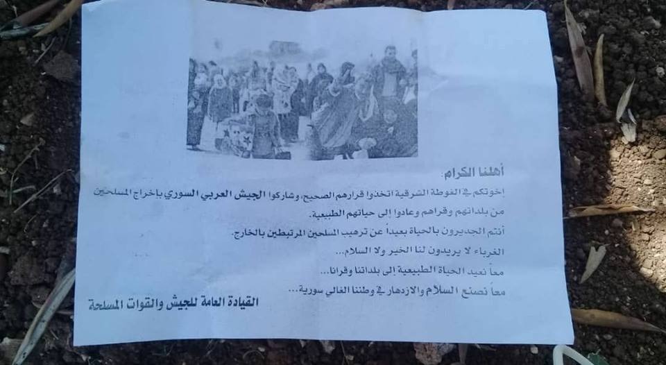 #الجيش_السوري يدعو سكان أبطع وداعل لمساندته في وجه الإرهابيين