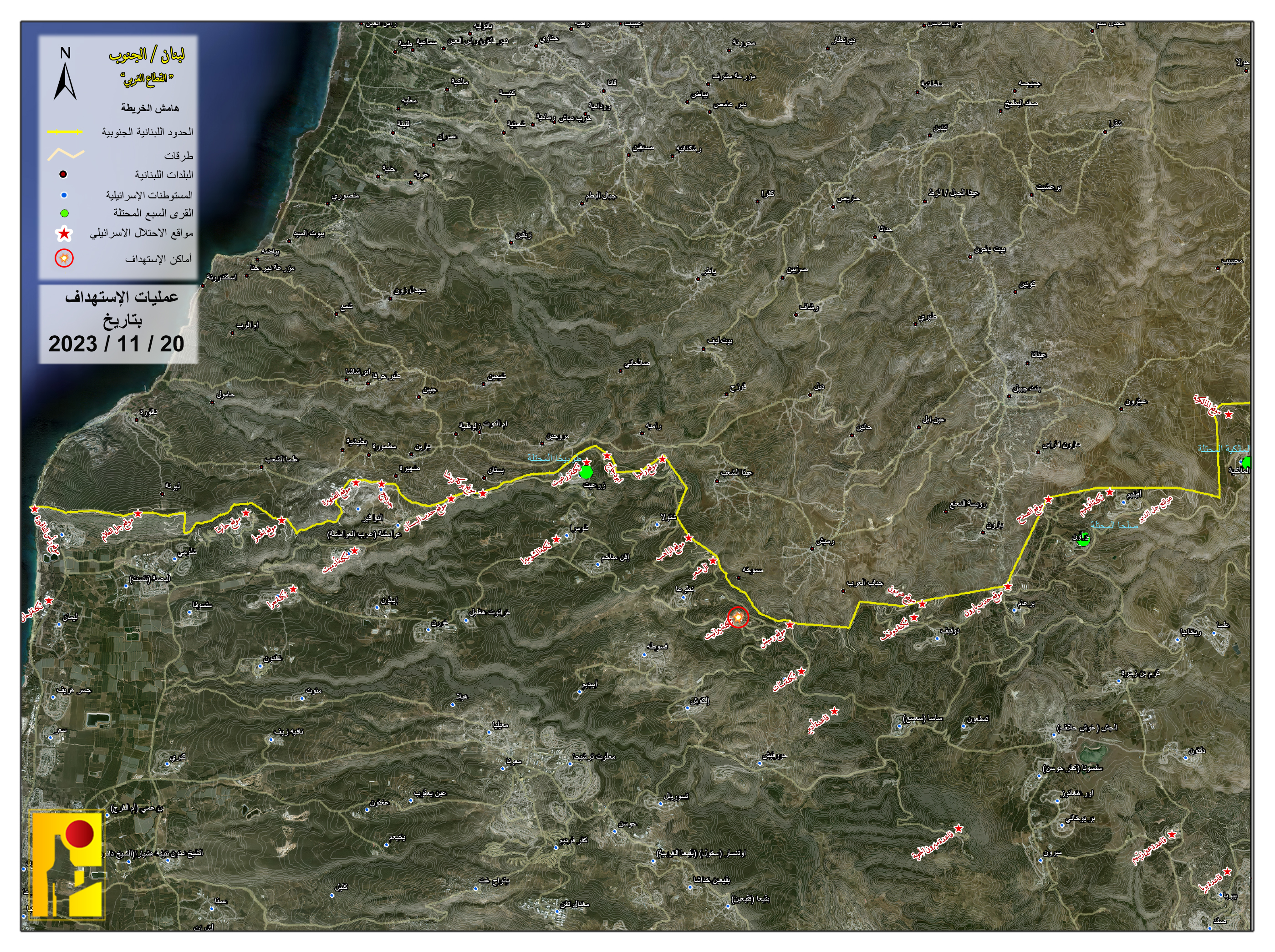 دعماً لشعبنا الفلسطيني الصامد في قطاع غزة وتأييداً لمقاومته الباسلة والشريفة، هاجم مجاهدو المقاومة الإسلامية مجدداً عند الساعة (8:20) من صباح يوم االاثنين 20-11-2023 موقع ثكنة برانيت مركز قيادة الفرقة 91 بصاروخي بركان.