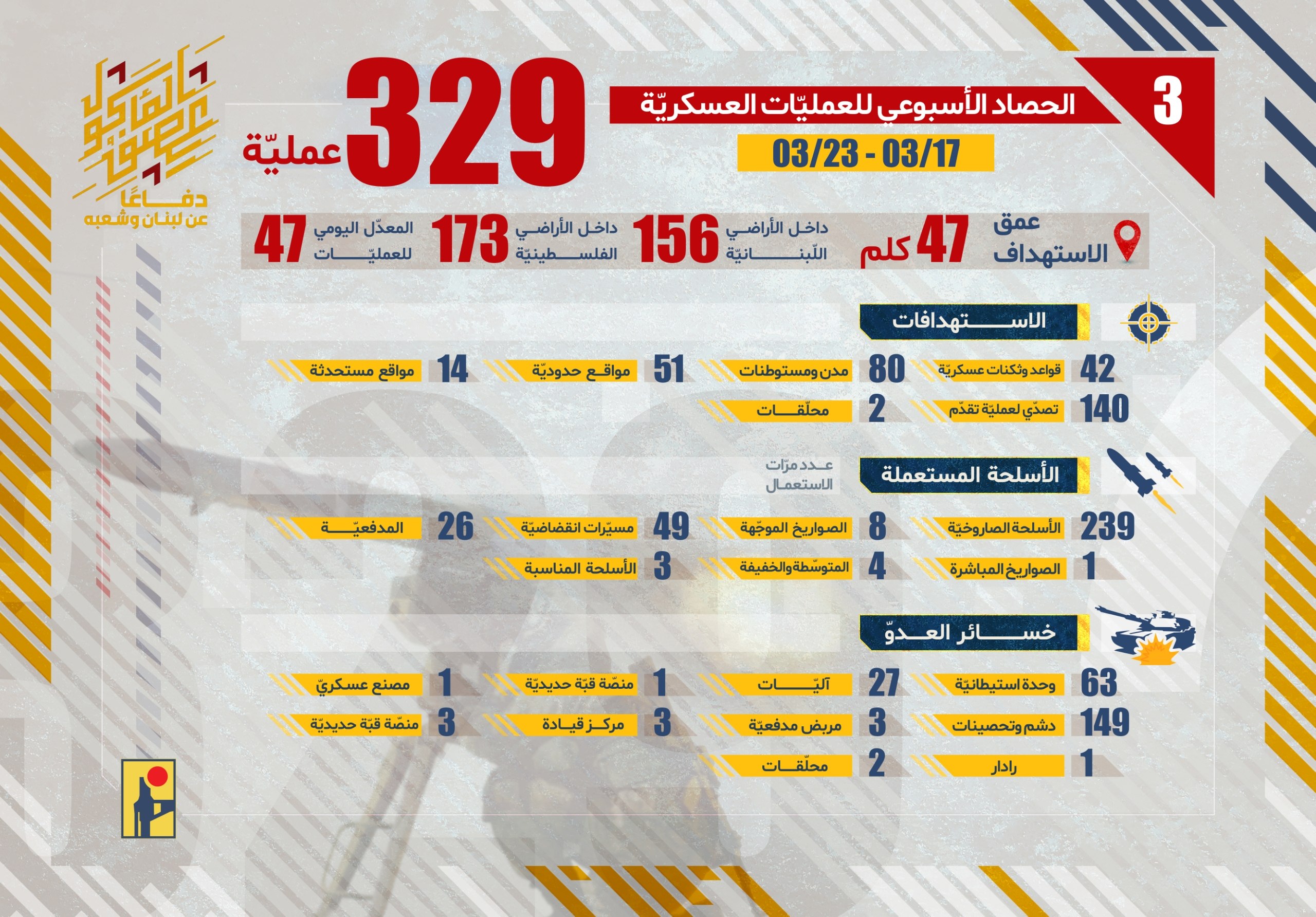الحصاد الأسبوعي لعمليات المقاومة الإسلامية من تاريخ 17-03-2026 حتى 23-03-2026