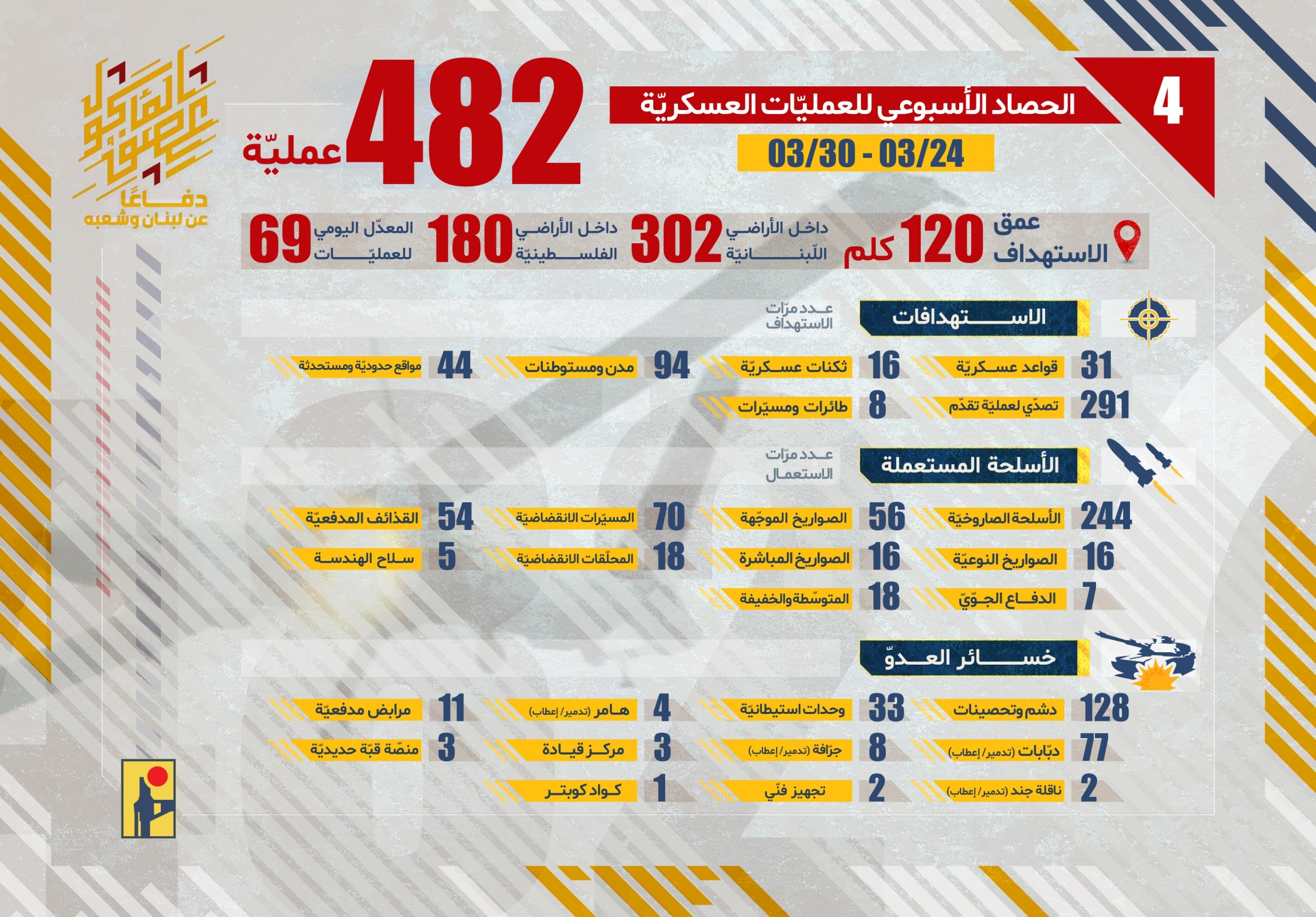 الحصاد الأسبوعي لعمليات المقاومة الإسلامية من تاريخ 24-03-2026 حتى 30-03-2026